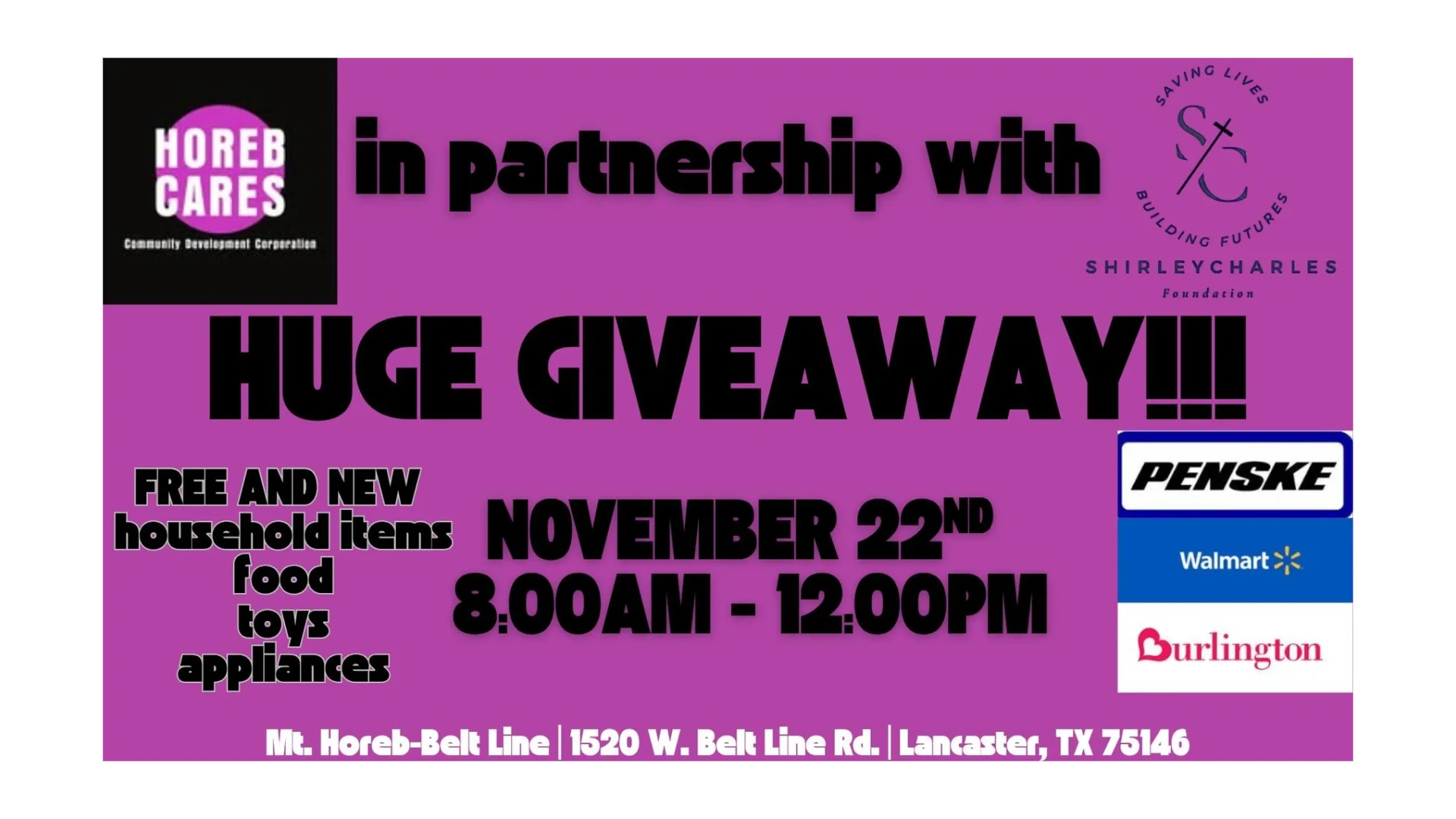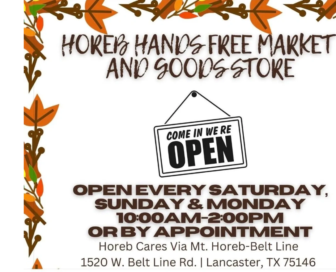 Our Horeb Hands department has secured partnerships with The North Texas Food Bank, The Shirley Charles Foundation. Our Horeb Hands Food and Goods Market is operating weekly Sat-Mon 10am-2pm. We also have a Huge Community Giveaway once per quarter where we giveaway food, clothing and household items and appliances. We’ve already serviced over 2,000 f