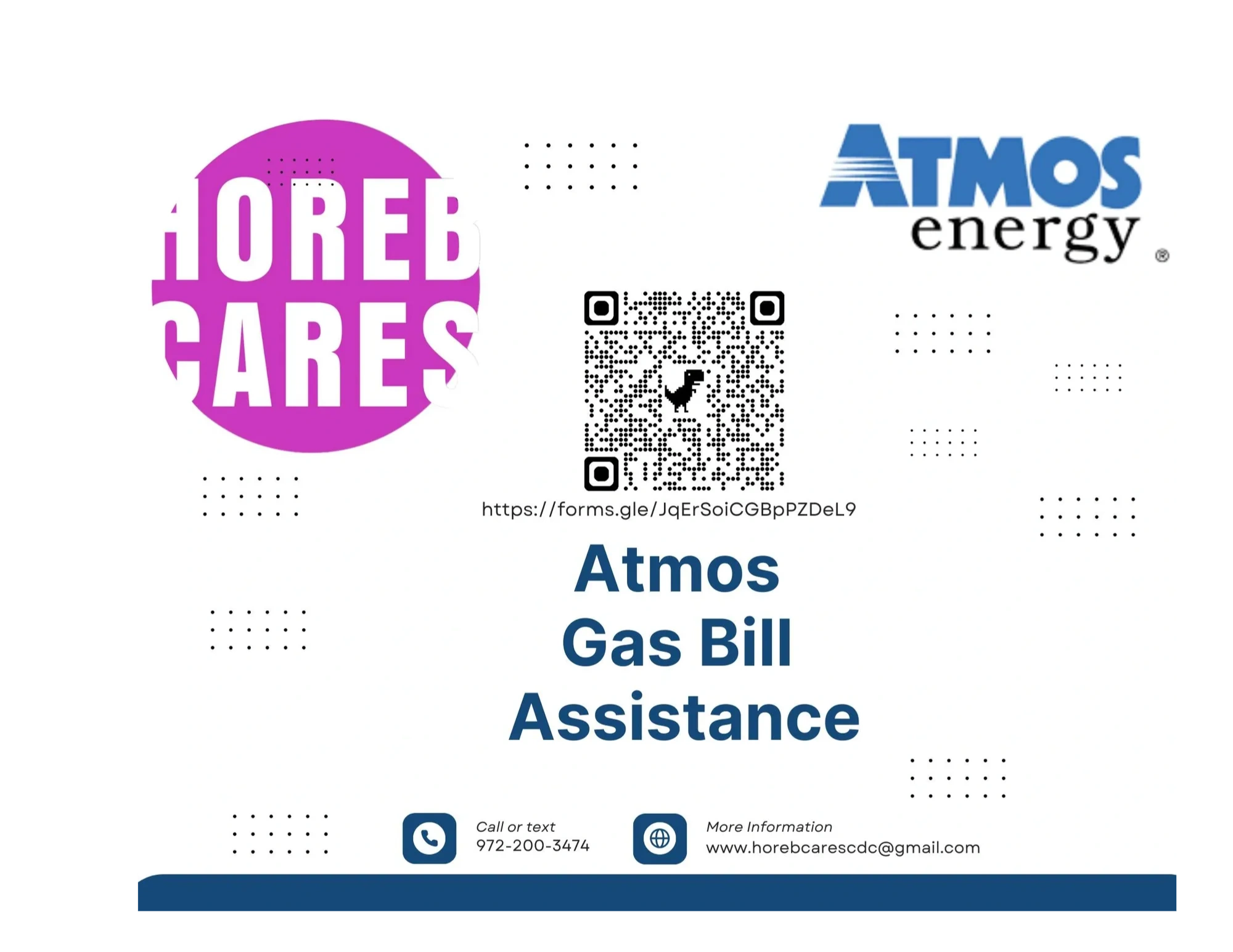 If you need help paying your Atmos Energy gas bill, scan the QR code below or click the link for the application. You must be an Atmos Energy Residential Customer and bill must be in applicant's name.Apply here: https://forms.gle/JqErSoiCGBpPZDeL9
